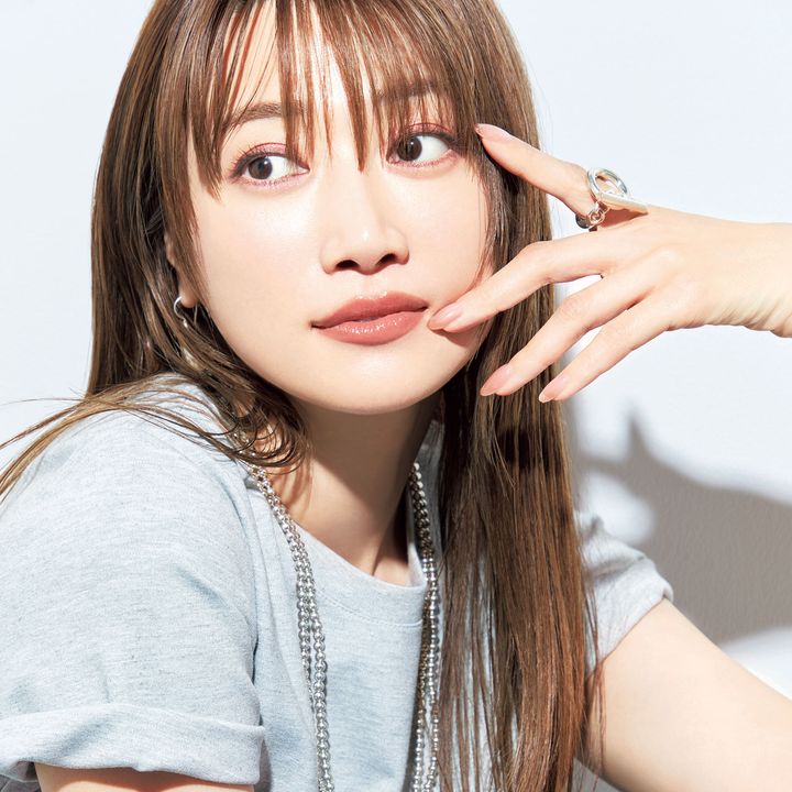 Tシャツ¥12,100(アルページュストーリー)デニムパンツ¥24,200(カデュネ)ピアス¥35,200(CAKI/ロードス)ネックレス[長]¥134,640リング[左手]¥27,500〈ともにバルブス〉ネックレス[短]¥41,580〈アルポ〉リング[右手]¥8,470〈ピルグリム〉(すべてズットホリック)