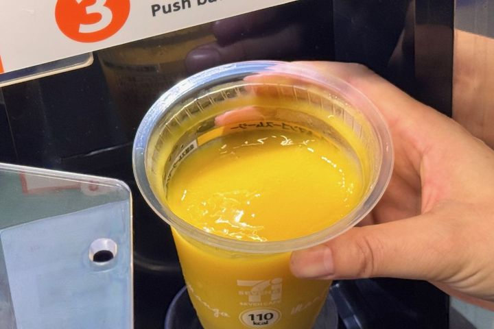 まず、冷凍ケースからスムージーのカップを取り出し、レジで会計を済ませます。