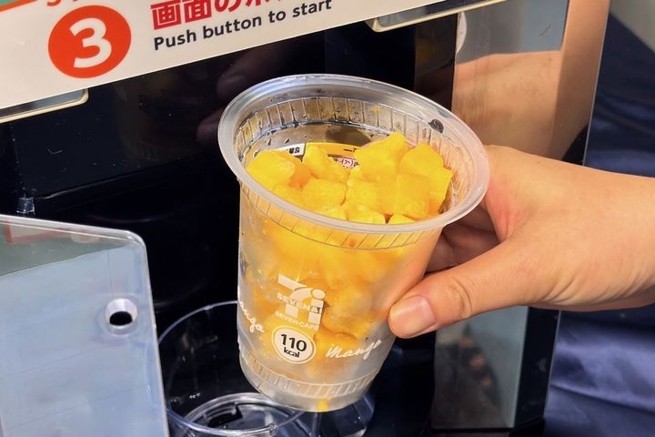 「セブンカフェ スムージー」とは、急速凍結されカップに入った果実や野菜、アイスキューブを、店舗に設置されている専用マシンで混ぜて作るスムージーのこと。開発に約8年の期間をかけ、2023年より全国のセブン-イレブンで本格発売しています。