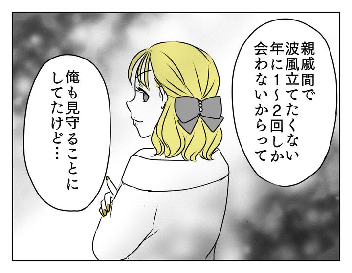 ハルカさん(37)は、夫ユウキさんと2人の娘と暮らす専業主婦。自分より相手のことを考えてしまう、気弱で優しい性格の持ち主です。そんなハルカさんは、5年前、7歳下の義姉ユリナさんから「30歳過ぎたらオバサン(当時ハルカさんは32歳)」という年齢マウント発言をされてしまいました。あまりに突然で言い返せず、その後も会うたびくり返される不快なマウント発言に耐え続けてきたハルカさん。近々行われる法事で30歳を迎えたユリナさんと会うため、言い返す覚悟を決めたようです。