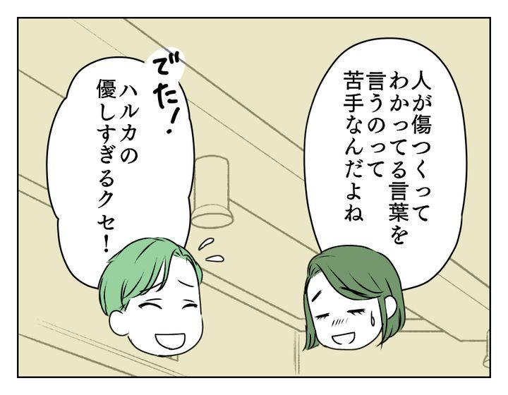 ハルカさんが今までイヤなことを言われても言い返さなかったのには、理由があったようですね。たしかに言い返せば傷つく人は出てきますし、そうならないために自分が犠牲になってあげられるのも素敵なことだと思います。しかしそこを考えるあまり、5年も我慢をしていてよかったのでしょうか……!? そして「自分で言う」と言いながら、また迷いだしている様子も少し不安です。これではユウキさんがため息をつくのも仕方がないのかもしれませんね。