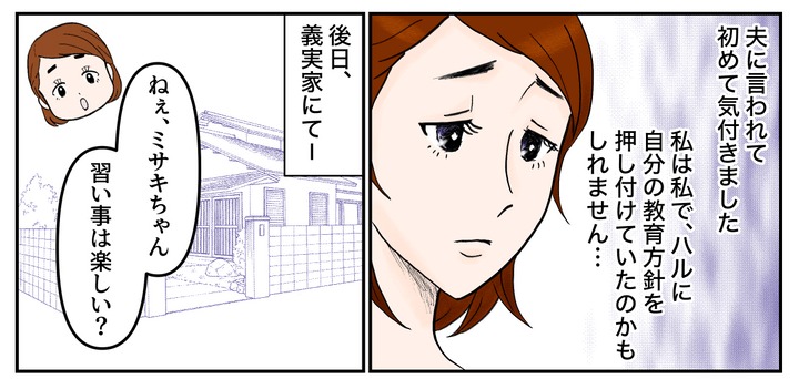 「自分の経験から子どもは遊びを優先するべきだと思っているのは、ナツの価値観だよね」夫に言われて初めて気が付きました。私は私で、ハルに押し付けていたのかもしれません……。後日、私は義実家でミサキちゃんに聞いてみました。