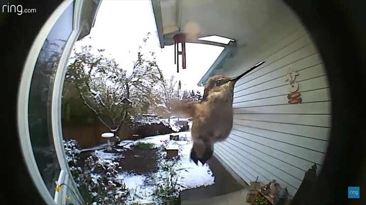 玄関前に現れ、セキュリティカメラに映っていたハチドリ。