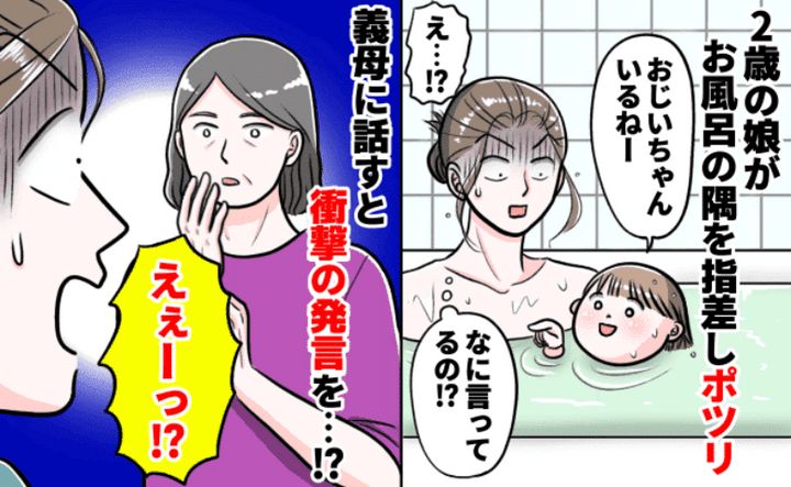 浴室の天井を示し「じいじがいる」とつぶやいたわが子…震えながらお義母さんに伝えたところ、予想外の返答が!