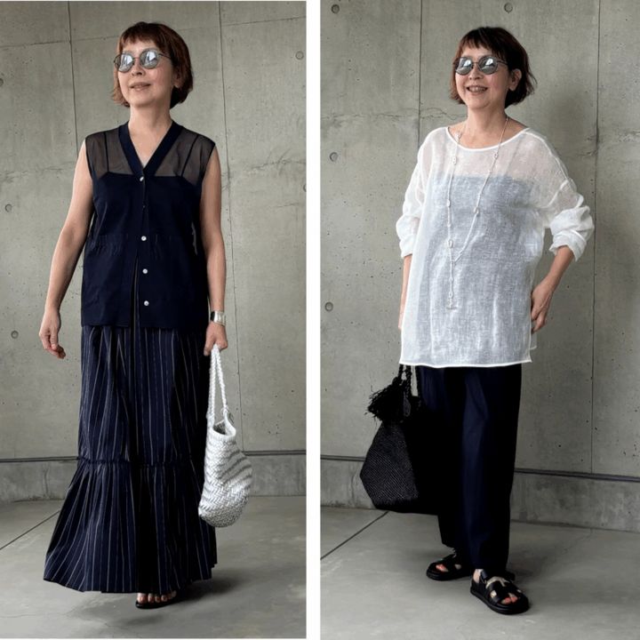 【50代ファッション】インナーまでが勝負!夏はシアースタイルで猛暑を乗り切ります!