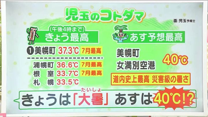 今が一年で一番暑いころで、きょうもオホーツクの美幌町や十勝の浦幌町、根室でも7月の観測史上最も高い気温を観測しました。