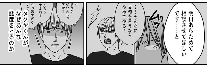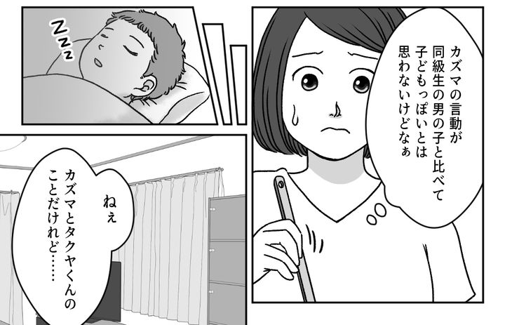 夫は、わかっているような全然わかっていないような答えを返します。私は夫のあっけらかんとしているところが好きですが、このままではカズマがかわいそうだと思いました。私にはわからない、タクヤくんにはタクヤくんなりの心境があるのでしょう。それがわかれば改善できるかもしれません。