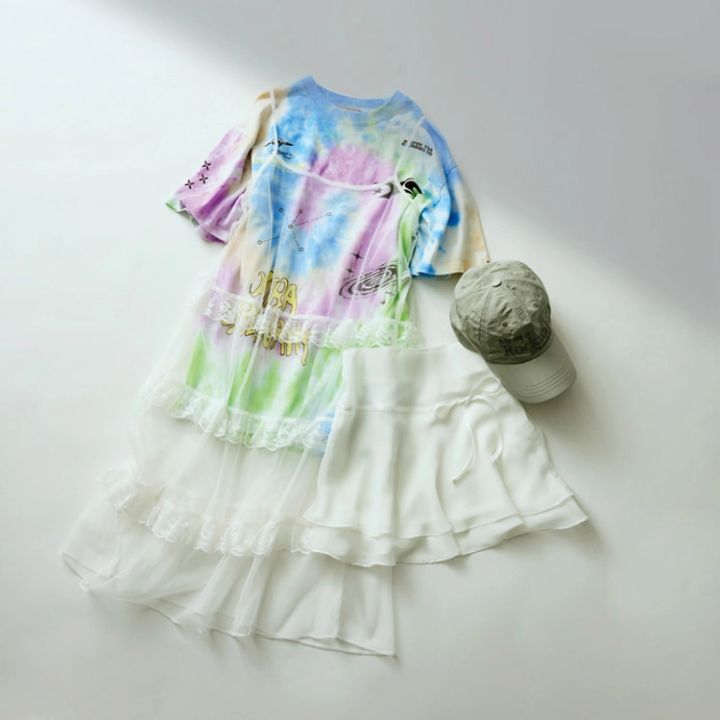 透けアイテムとレイヤードすることで、ライブTがコーディネートにマッチ。レースやシアーの透け感で甘さもプラスできるからプリかわな着こなしに。