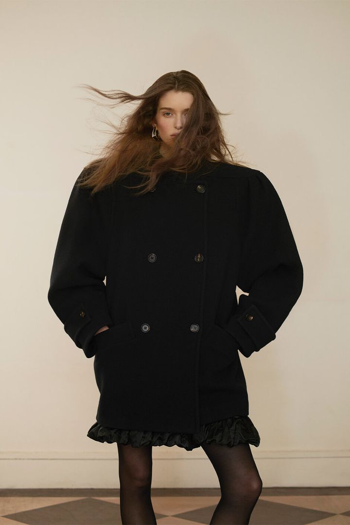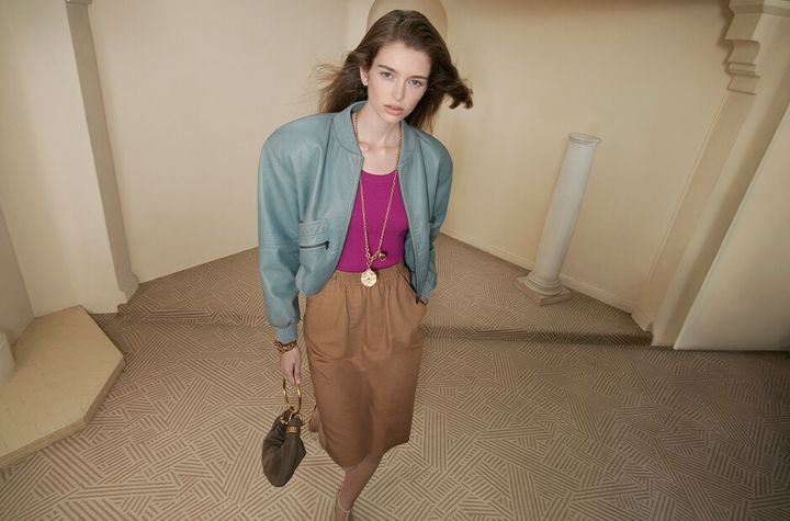 アイテムには軽やかな素材を用いながら、ビッグショルダーや角張ったデザインなどの80sの力強いシルエットを構築した。