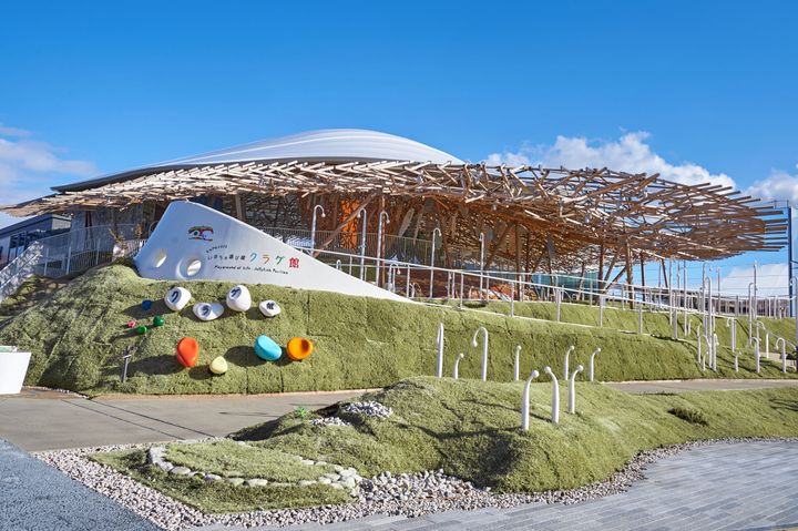 まず向かったのは、「クラゲ館」の入口となる“プレイマウンテン”。パビリオンの外周をぐるりと囲む道には、ただ歩くだけじゃもったいない、五感をくすぐる仕掛けがあちこちに。