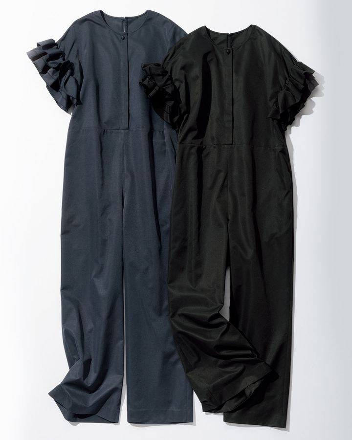 【写真1枚目】オールインワン¥26,400(ミースロエ/ミースロエルミネ新宿1店)カットソー¥6,930(アンクレイヴ/アンクレイヴ〈オンワード樫山〉)バッグ¥51,800(カフネ/カフネ カスタマーサポートセンター)シューズ¥17,050(ダイアナ/ダイアナ 銀座本店)イヤリング¥7,920〈イットアトリエ〉(フォーティーン ショールーム)リング¥11,550(ココシュニック オンキッチュ/ココシュニック)【写真2枚目】オールインワンは色違い。ニット¥17,600(アンクレイヴ/アンクレイヴ〈オンワード樫山〉)バッグ¥19,800(アドカラム/アンソロジー)シューズ¥15,950(ダイアナ/ダイアナ 銀座本店)ピアス¥2,500(CENE)