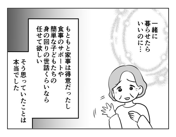 私(義母)は、夫(義父)との2人暮らし。ひとり息子のリュウは結婚をして、奥さんのチナツさんと、息子のソウくん、娘のサヤちゃんの4人家族です。私たちの生きがいは孫たちに会うこと。チナツさんもとても明るくて優しいお嫁さんで、よく家族でわが家に遊びにきてくれていました。もともとここら辺の地域では二世帯で同居をしている家庭も多く、わが家も以前から同居をお願いしていました。私は料理が得意だったし、孫たちの身の回りの世話や食事作りは任せてほしい! そう提案してソウくんが小学校に上がるタイミングで、ようやく同居をすることができたのです。
