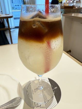 とても暑い日だったので、レモンスカッシュ(700円)をオーダーし、バリスタさんがおすすめしてくれた「エスプレッソショット」を1ショット追加(プラス50円)しました。層がキレイに分かれて、見た目も涼し気ですよね! コーヒーを提供しているのは、神戸元町などにお店を構える「FRANK(フランク)」さんです。