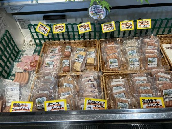 地元のお肉「赤豚」をはじめ農産物やお菓子も