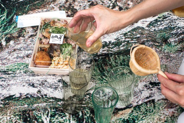 松元の運転する車で、東京・学芸大学にあるお弁当屋〈biji〉(ジャパニーズエスニックなおかずがおいしい店)に立ち寄り、ガパオにカオマンガイ、チキン南蛮、ルーロー飯etc.を調達して、公園に着いた4人。