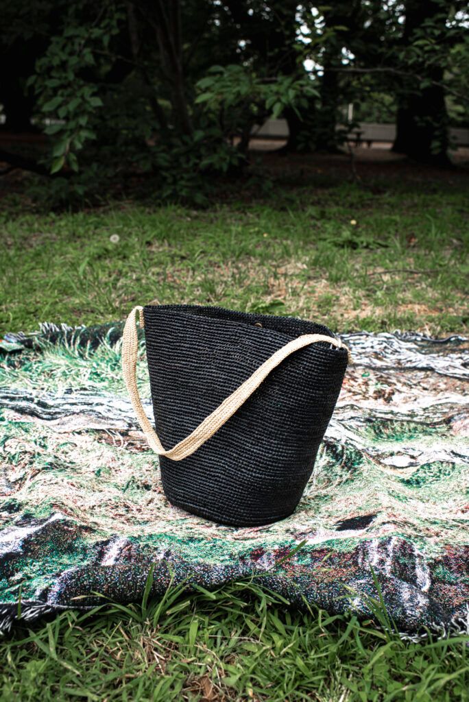 葉田:したねぇ。わたしのベストバイはこの〈アンピアーナ〉っていうブランドのカゴバッグ。本体が黒で、持ち手がナチュラルという、まずそのシックなツートーンに惹かれて。それに、内ポケット付きだし肩掛けもできるし、利便性も決め手。