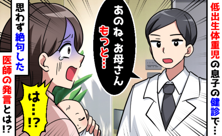 「ちょっと…!」低出生体重児の息子の成長に不安が。2週間健診で医師が胸を刺す発言!すると助産師が…!