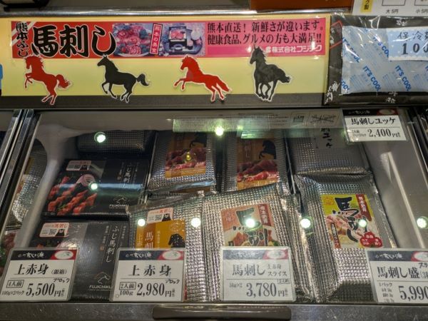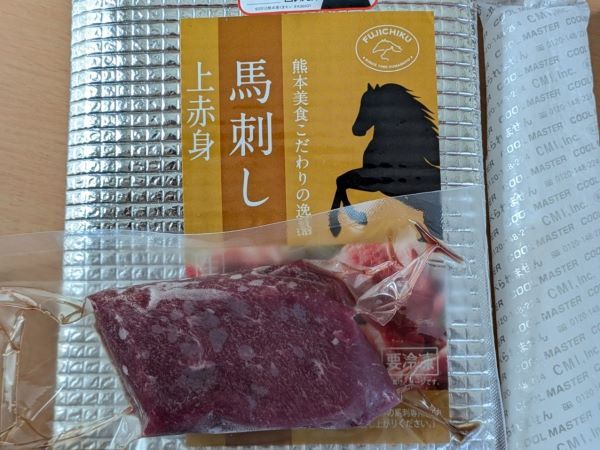 半解凍状態にして薄くカット。美しく光る馬刺しを口に入れると、その柔らかさに驚きます。カナダ産熊本育ちの上質な馬肉は、臭みもないので、馬肉をあまり食べない方もきっと気に入るおみやげになると思いますよ。
