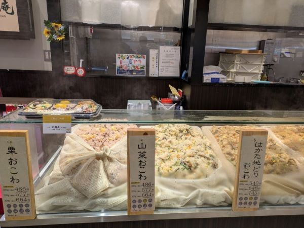 売り場に併設された厨房で蒸しあげられたばかりのおこわは、湯気が立っていて、正にできたて!