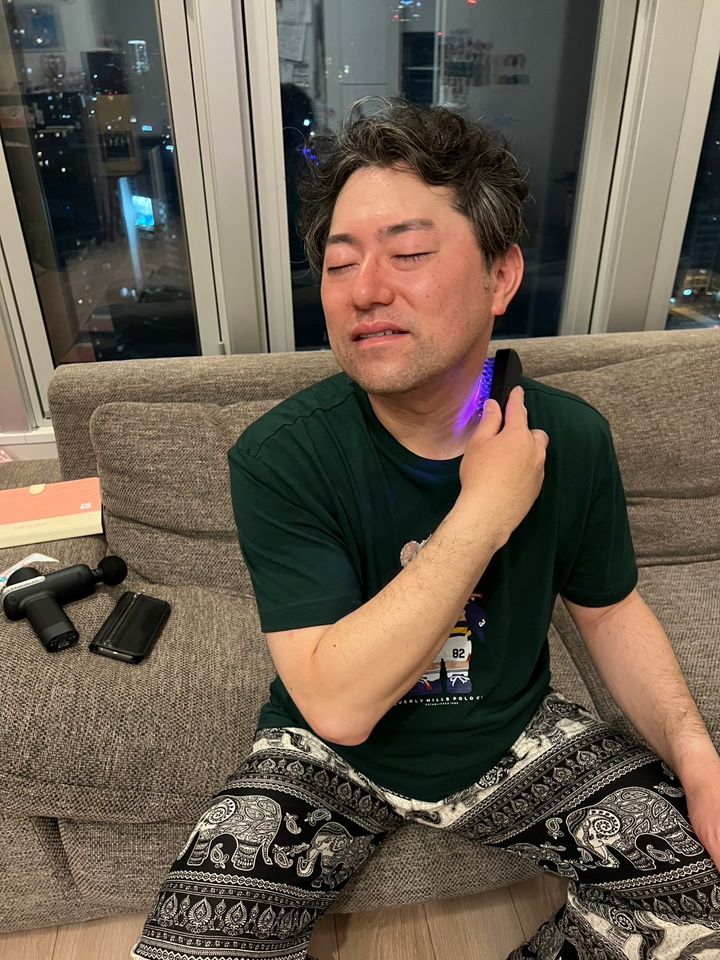 Sクリニック院長。2人のお子さんをおもちで仕事柄、睡眠時間が少ない中、お子さんの学習に寄り添い、イベント事にも積極的に参加される育メンパパ。最近、顔全体のむくみや、目の下のクマ、たるみが気になり始め…就寝前や趣味のゴルフに出かける隙間時間に電気ブラシを体験していただきました。