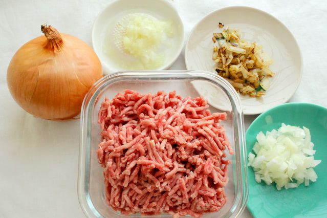 例えば、多くのレシピでは炒めた玉ねぎを加えますが、生のみじん切りやすりおろし玉ねぎを加えるレシピもあるなど。筆者は炒めるのが面倒なので、みじん切りの生玉ねぎを混ぜ込んで作ります。