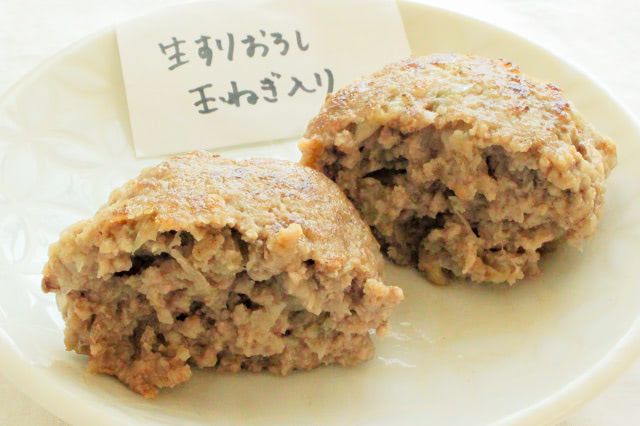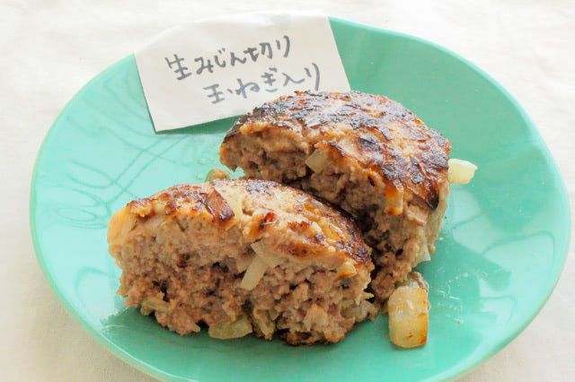 食べてみると、玉ねぎの歯ごたえが残っていて、噛むとフレッシュな風味が広がります。玉ねぎの味わいが、ひき肉に負けていません。筆者は普段、生みじん切りの玉ねぎを加えてハンバーグを作っているので、いつも通りの仕上がりという感じです。