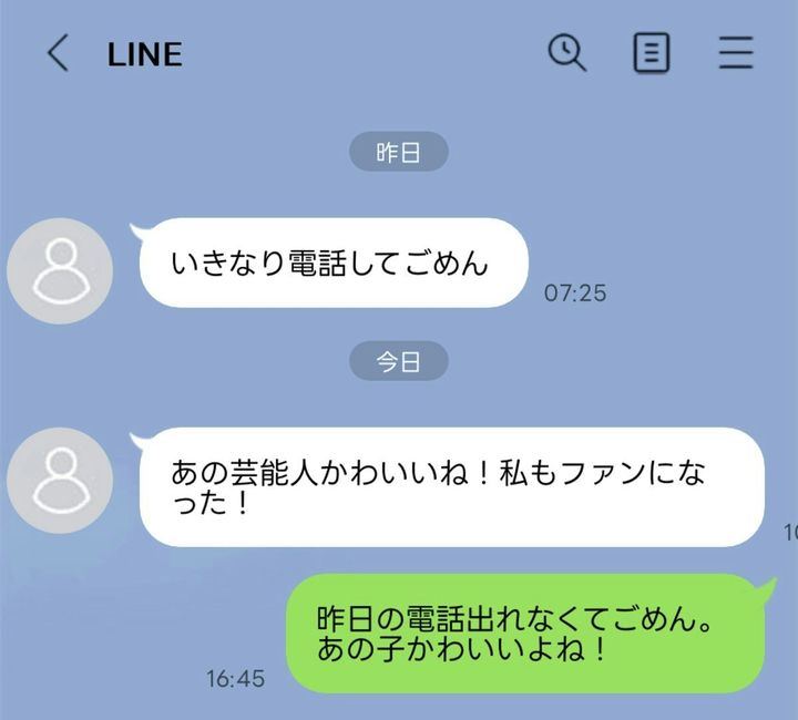 「◯◯(私の好きな芸能人)かわいいね!」とか意味のないLINEをしてきたり