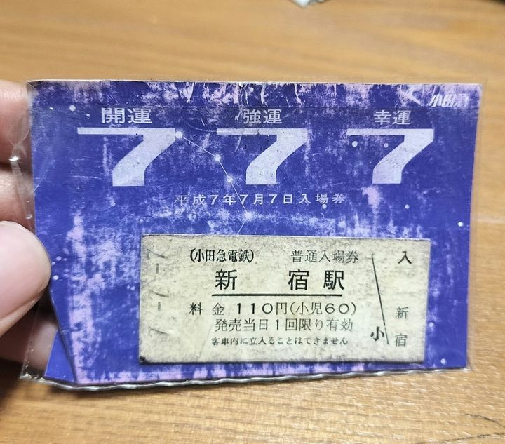 令和7年7月7日にお父様の財布から「平成7年7月7日」の鉄道の乗車券が出てきます。ラッキーセブン過ぎる乗車券!まるで、令和7年を待ち構えていたかのよう。娘にラッキーセブンな強運の乗車券を見せることができて、お父様はさぞうれしかったことでしょう。