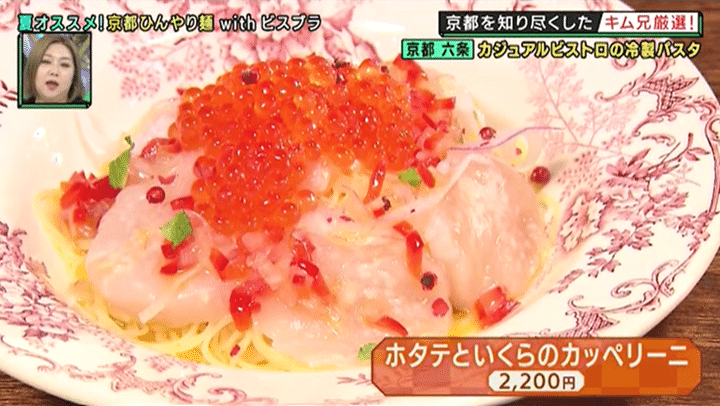 ラストは、キム兄が5年ほど前から足繁く通っているとっておきのお店。朝からお酒が飲める人気のビストロで、通常はテレビ取材NGだが、キム兄ならばと今回は特別にOKしてくれたテレビ初登場の名店だ。旬の賀茂なすやヤングコーンなど、今がおいしい食材をたっぷり使った自慢の創作メニューを堪能した後は、いよいよ麺料理へ。贅沢な魚介と“天使の髪”とも呼ばれる繊細な麺を使った冷製パスタに、「めちゃめちゃおいしい!」「完ぺき!」とビスブラも興奮!