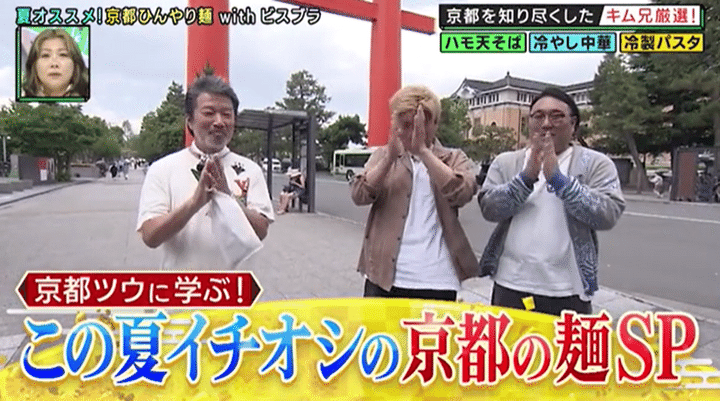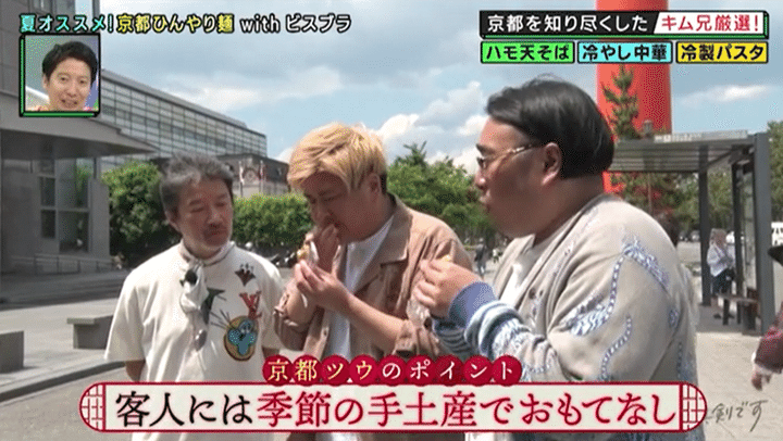 吉本一の京都ツウ“キム兄”こと木村祐一が、ツウだからこそ知る“粋な京都”を紹介する大好評シリーズ! 今回は「京都ツウキム兄に聞く!この夏イチオシの麺SP」と題し、夏こそ食べたい和洋中の麺料理のオススメ店にビスケットブラザーズを案内する。