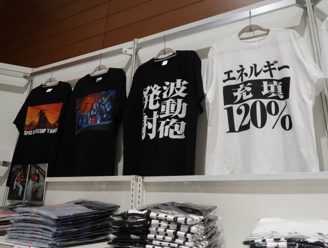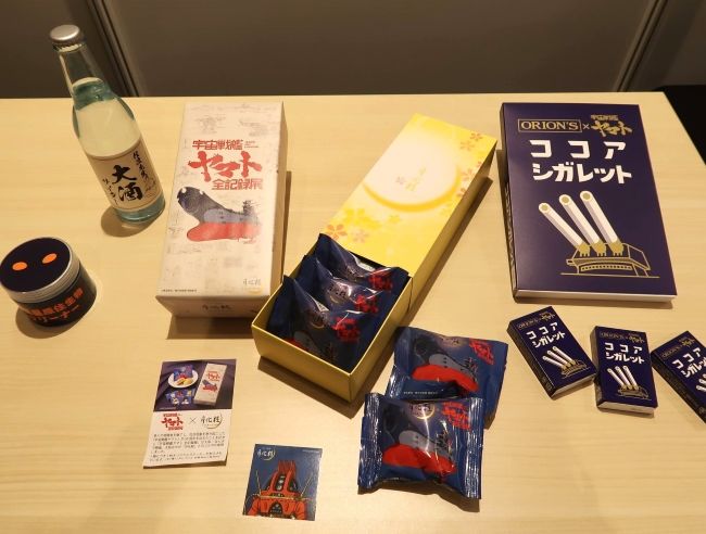 また、グッズコーナーでは、東京会場で反響のあった「Wヤマトコラボ液状のり」(500円)や「ソフビ(ヤマト・古代進・森雪・デスラー)」、各キャラクターたちの「アクリルスタンド」など、人気のアイテムが多数並びます。さらに地元メーカーとコラボした、「ココアシガレット」や「みるく饅頭 月化粧」の特別パッケージのほか、全19種がTシャツコレクションも販売されます。