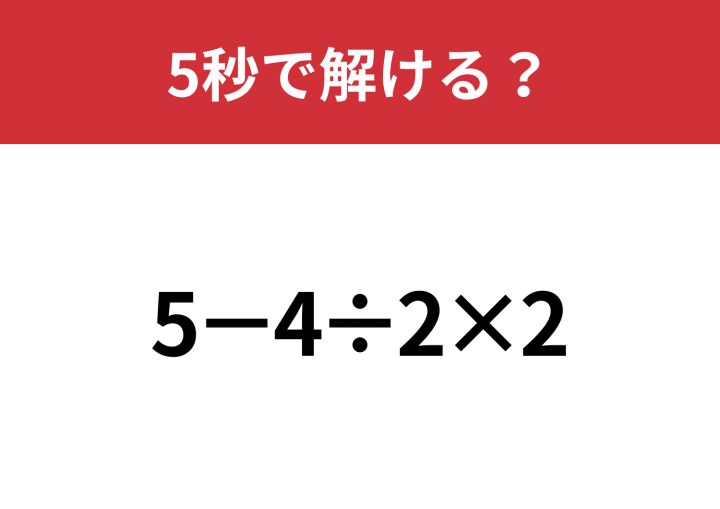 大人でも解けない人が多いかも?「5−4÷2×2」5秒で解ける?