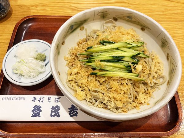 【登茂吉】花開くような揚げ玉と細切りキュウリの見た目もさわやか「冷やしたぬき」