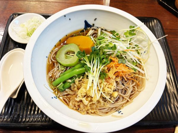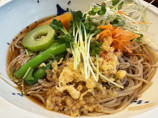 【利久庵】季節の野菜たっぷりの彩り豊かな「冷やしころもそば」