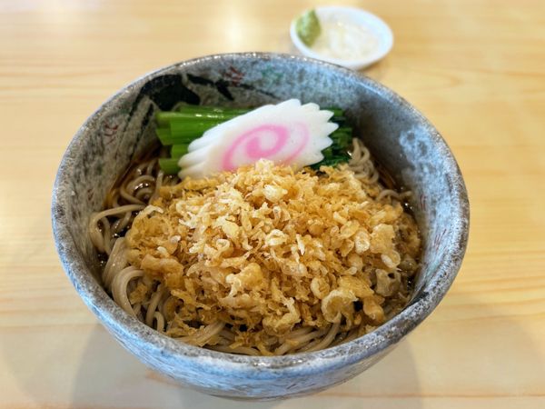 揚げ玉はサクサクで香ばしい食感。深い器の底からたぐり寄せるように、そばつゆがついたそばと一緒に食べると、かき回した分、揚げ玉がそば全体に絡みついて良い食感に。食べ進むうちに揚げ玉にそばつゆがしみ込んで、しっとりとした味わいに変化していきました。
