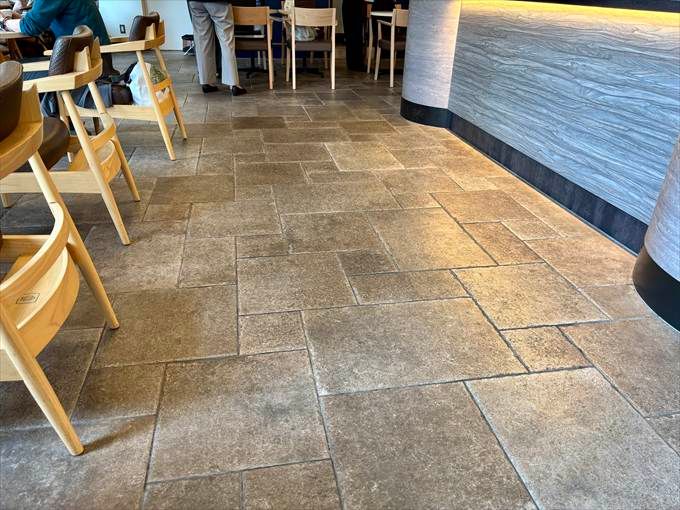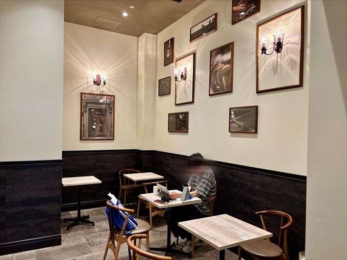 壁や床は「古城」をイメージした素材を使用しているとのこと。確かに、特徴的な石張りの床はコーヒーチェーン店では珍しい内装かも。細部まで雰囲気づくりにこだわっているからこその特別な空間です。