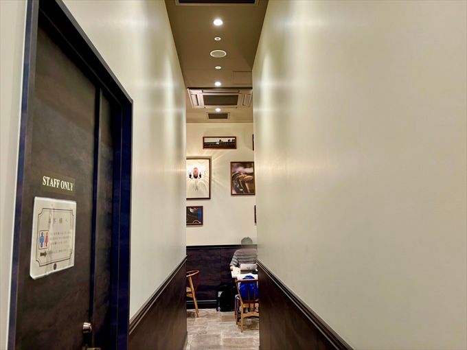 店内の1番奥には細い通路を見つけました。先に進むと、アートに囲まれた外からは見えない空間が。