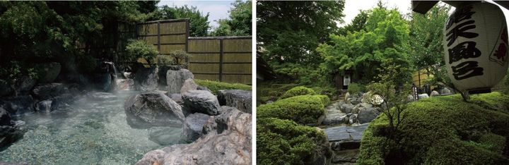 とどめは、かけ流しの天然温泉。泉質は低張性弱アルカリ性高温泉で、別名「美肌の湯」と言われています。露天風呂は岩造りで風情たっぷり。うれしいことに、サウナも完備です。