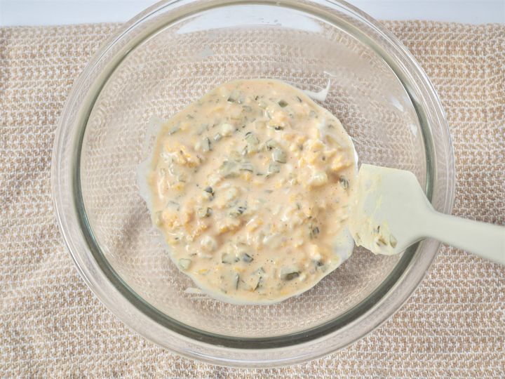 タルタルソースは、ゆで卵を使うことが多いのですが、このレシピならお手軽に炒り卵で作れちゃう!