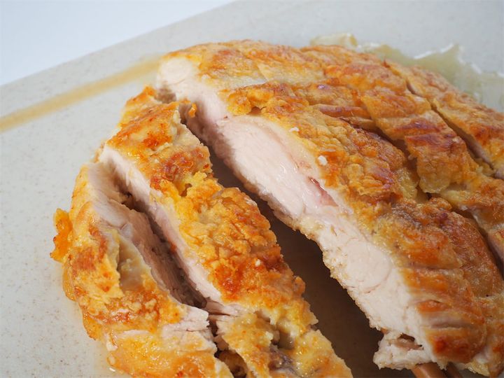 ちなみにレシピの「鶏むね肉1枚」はサイズが明記されていなかったため、筆者は430gの大きめサイズを使用。衣の食感を楽しみたい方は、もう少し小さめサイズでもよさそうです♪
