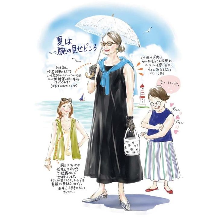 これまでのシニア層とはセンスも価値観も大きく異なるいまの60代。“新しい大人世代”としてどうありたいか、日々修行中のイラストレーター植草桂子さんのエッセイ。今回は「ノースリーブ」のお話です。
