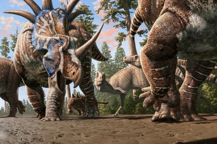 研究チームはここで、少なくとも5頭のケラトプス科(トリケラトプスを代表とする角竜類)が並んで歩いたと考えられる足跡列を確認。