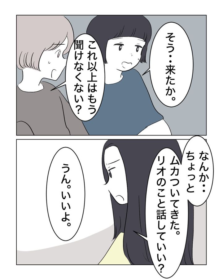 「そう・・来たか」とリオさんが呟くと、「これ以上はもう聞けなくない?」とホノカさん。すると、「なんか・・ちょっとムカついてきた。リオのこと話していい?」アオイさんがそう言い、「うん。いいよ」とリオさんが答えました。