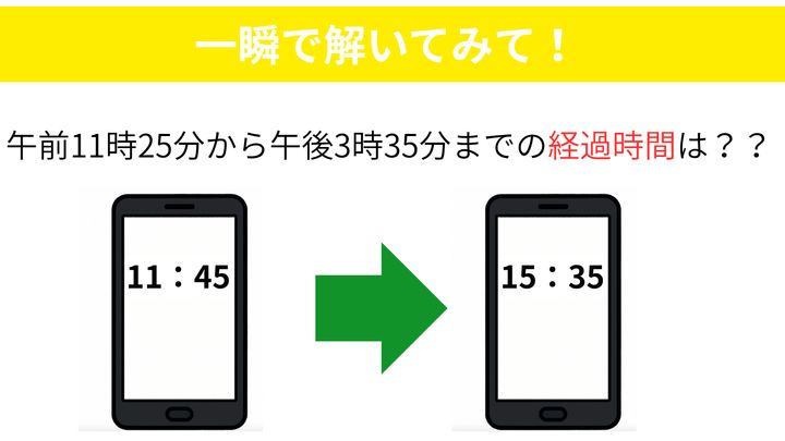 【ポイント解説】 11:25 → 12:00 … 35分 12:00 → 15:35 … 3時間35分 合計すると… 35分 + 3時間35分 = 4時間10分