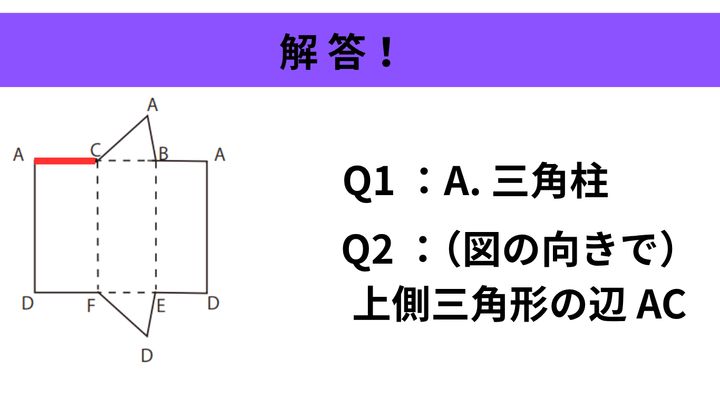 第1問:【問題】この展開図でできる立体と、赤い辺の位置は?