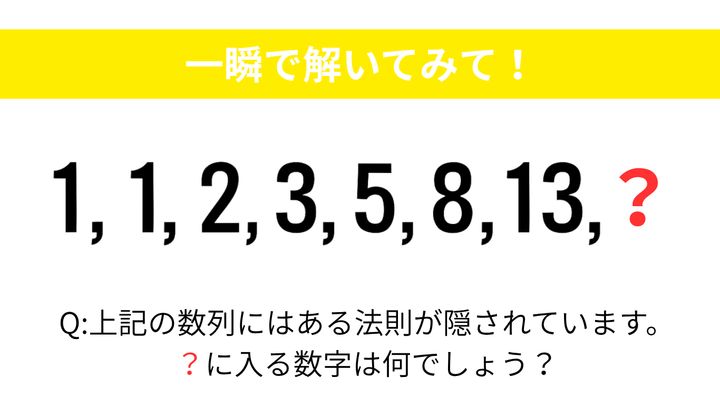 【ポイント解説】 この数列は「フィボナッチ数列」と呼ばれる有名なパターンです。 前の2つの数字を足して次の数字を作ります。