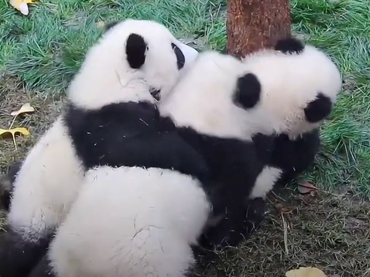 木登りをめぐって大混乱! 子パンダたちが見せる“お団子バトル”に癒される
