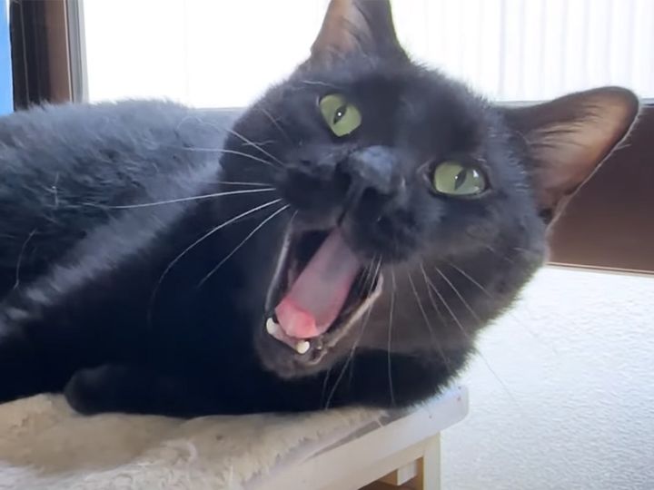 黒猫のリオさんは、細い声でちょっぴり控えめなお返事。