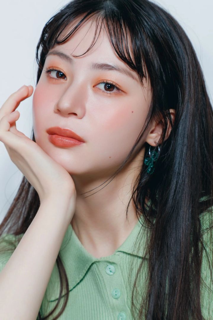 オレンジトーンを効かせた軽やかなアイメイクの完成。ほどよい目ヂカラに心ときめく♡