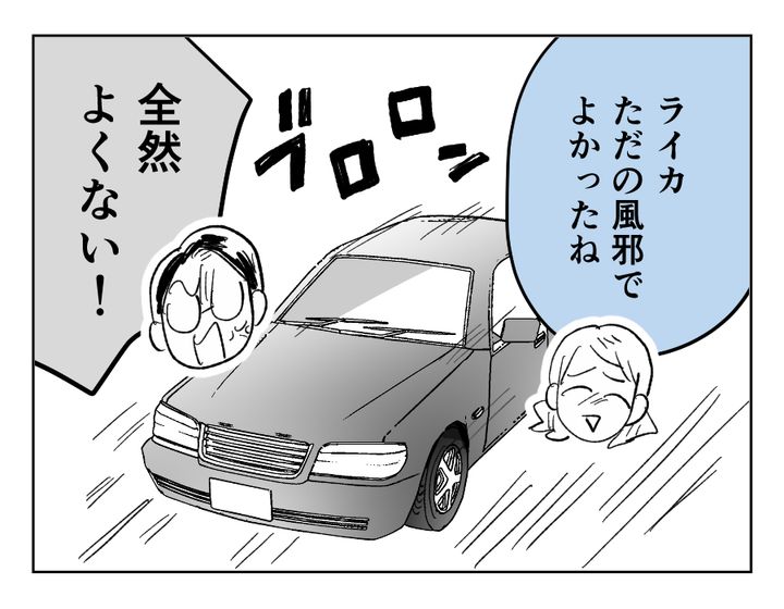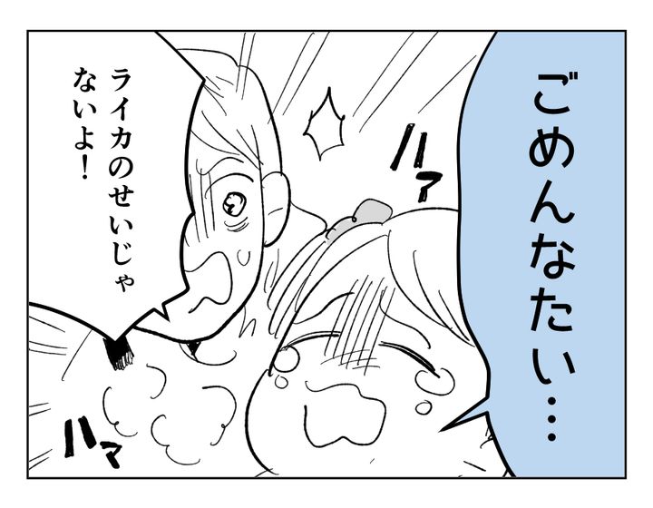 ライカちゃんの熱はただの風邪だったようで、とりあえずひと安心ですね。しかしタカユキさんの機嫌がなおる気配はなく、帰りの車内でも「てれすちゃんの生配信は見逃すわ、コメントも残せないわ最悪だよ」と喚き散らします。怒りは冷めるどころかヒートアップ。タカユキさんはまだ幼いライカちゃんにまで責任を求めはじめました。しょげるライカちゃんを見て、クルミさんの心のなかにはひとつの感情が沸き起こりました。今回の一件は、夫婦としての今後の関係を揺るがすには充分なものだったようですね。